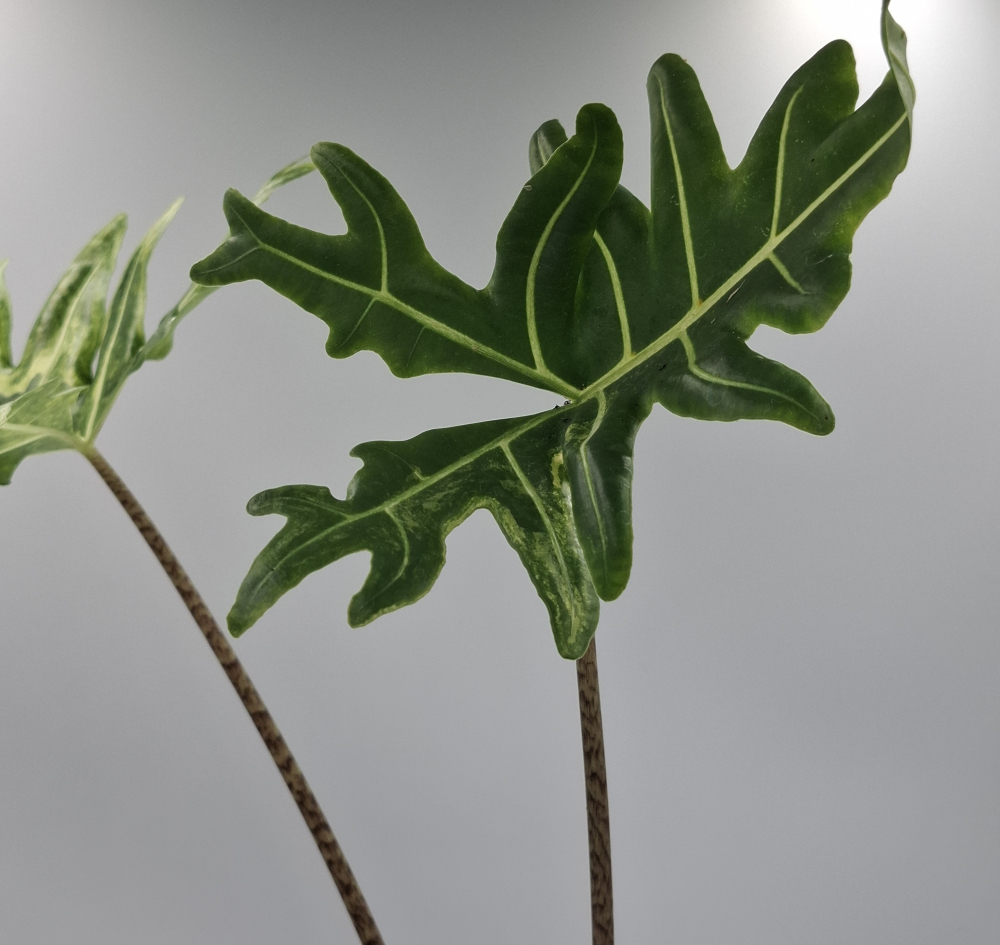 a variegáció miatt kevesebb klorofill van a levelekben, ezért a variegált Portei igényli a világosabb, de még mindig indirekt fényt, mint a teljesen zöld fajták — különben a foltok halványulhatnak vagy a növekedés visszaeshet