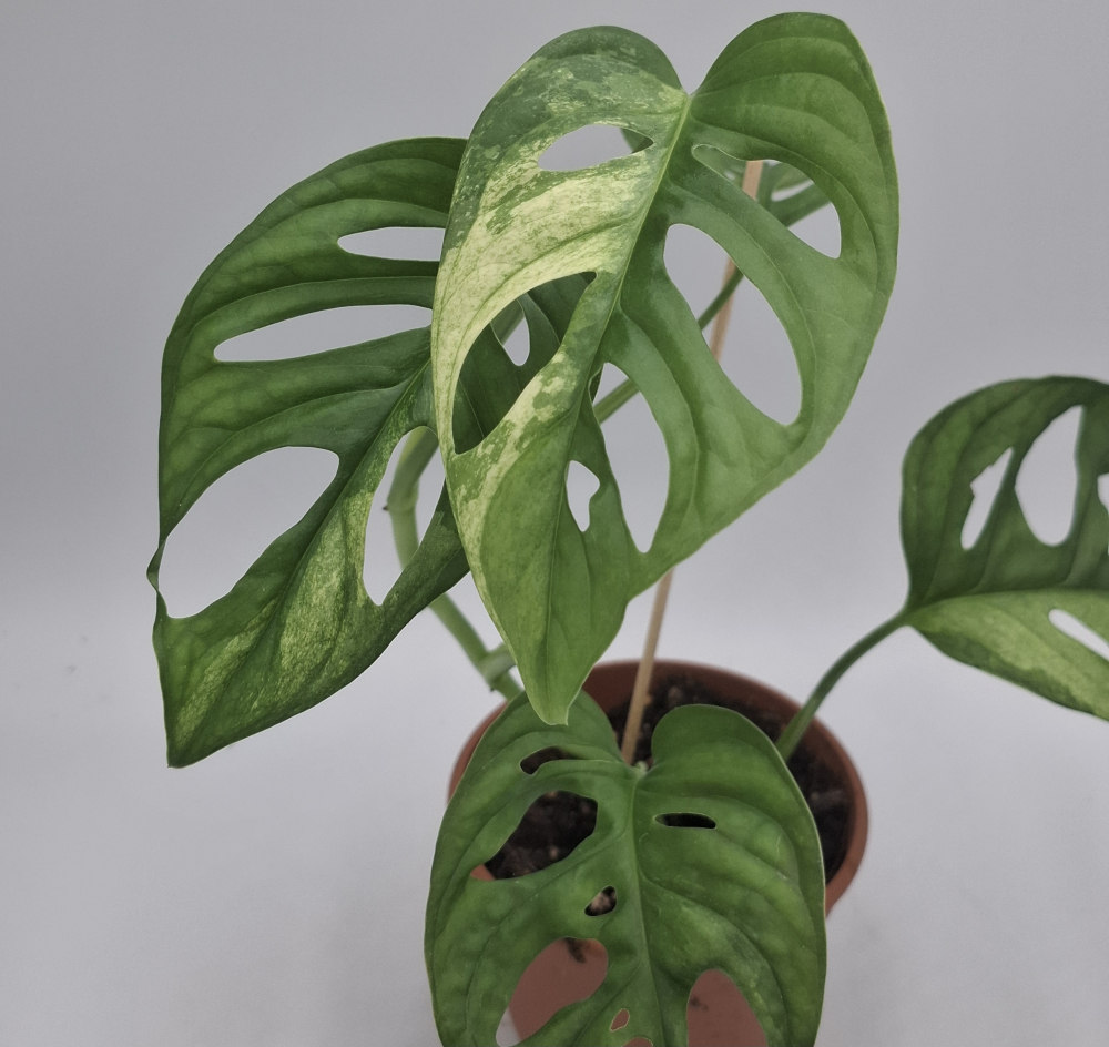 Ez egy különleges, ritkább szobanövény, mely a klasszikus Monstera adansonii tarka változata. Ez a növény fehér vagy krém színű mintázattal rendelkezik a zöld leveleken. A variegáltság miatt lassabban nő és több törődést igényel, mint a sima változat (magasabb fényigény)