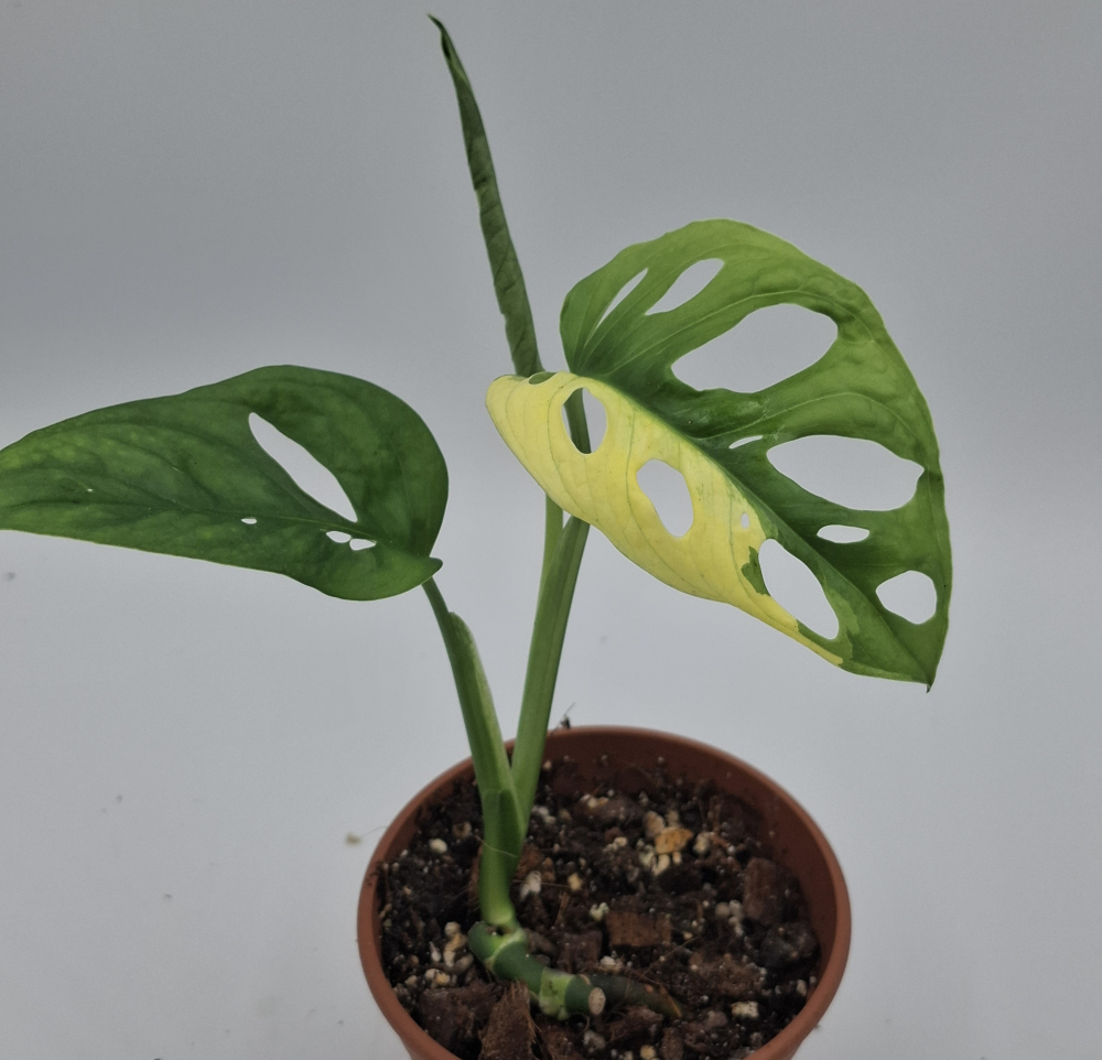 Ez egy különleges, ritkább szobanövény, mely a klasszikus Monstera adansonii tarka változata. Ez a növény fehér vagy krém színű mintázattal rendelkezik a zöld leveleken. A variegáltság miatt lassabban nő és több törődést igényel, mint a sima változat (magasabb fényigény)
