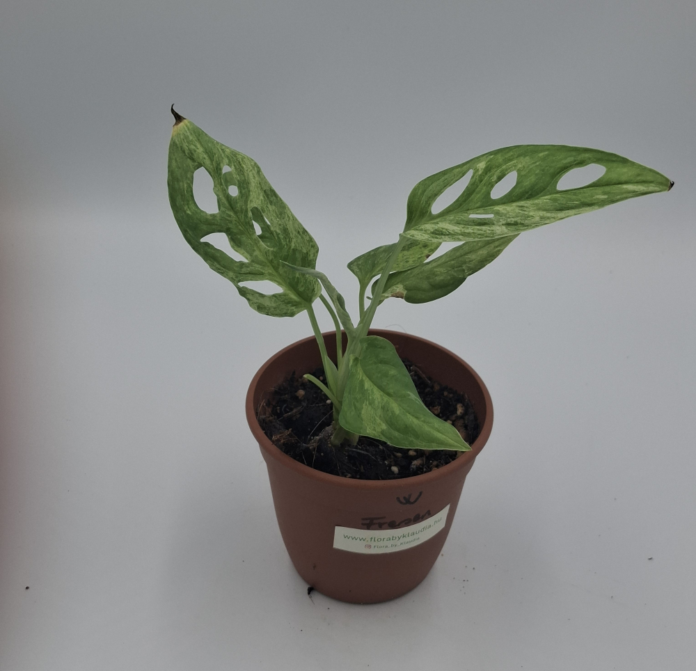 Különleges, ritkább változata a jól ismert Monstera adansonii-nak. Ez a fajta különlegessége a fehéres, világos mintázat.