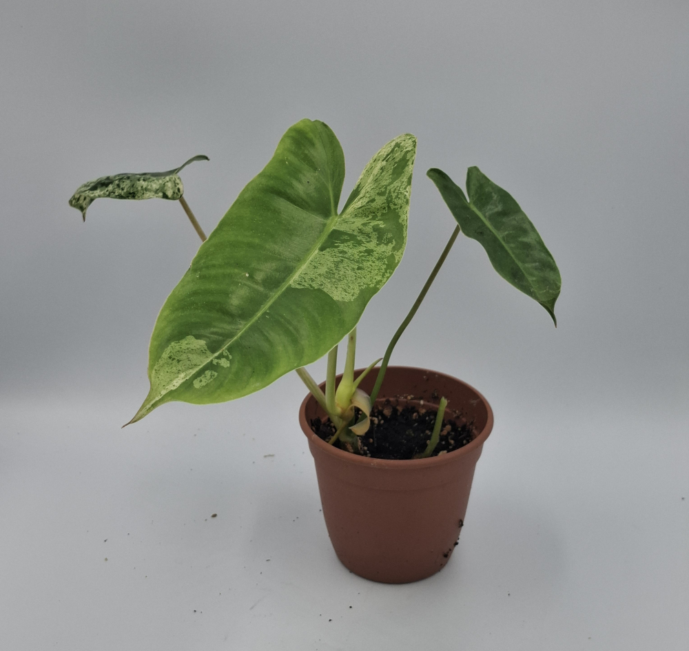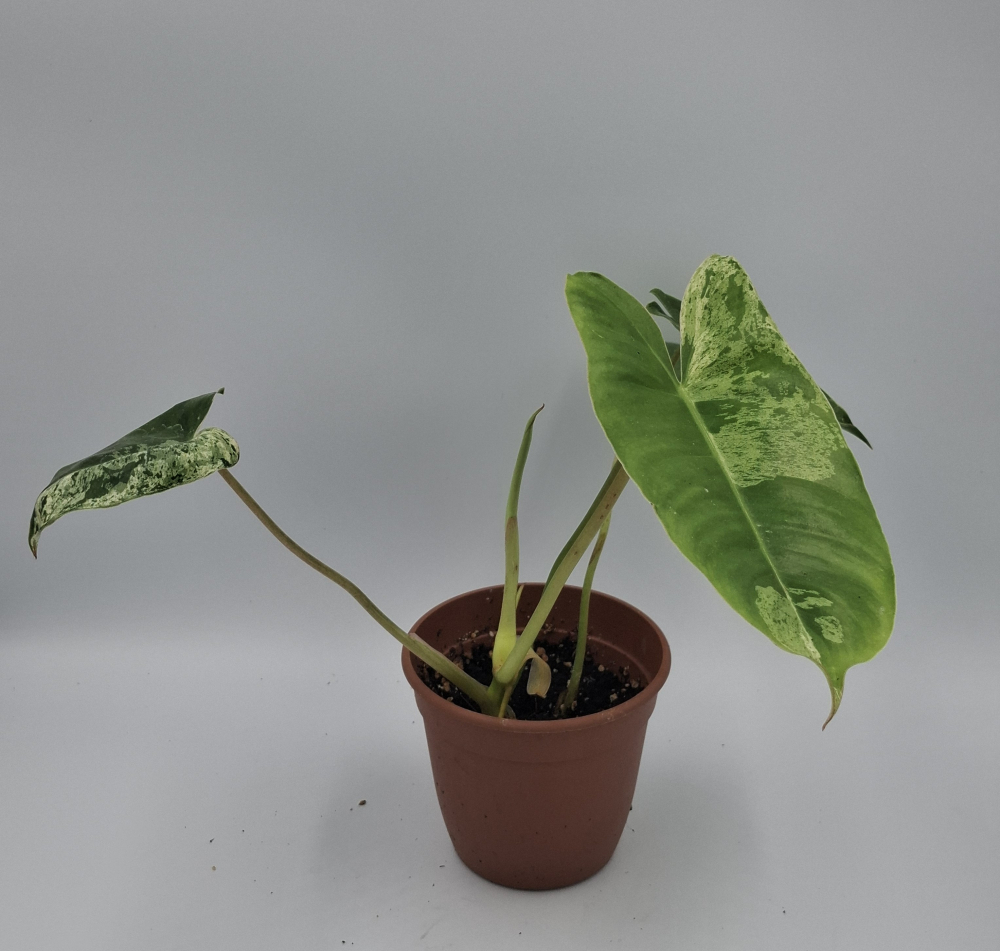 Levél: Hosszúkás, szív alakú, fényes, mélyzöld apró fehér foltos mintázattal