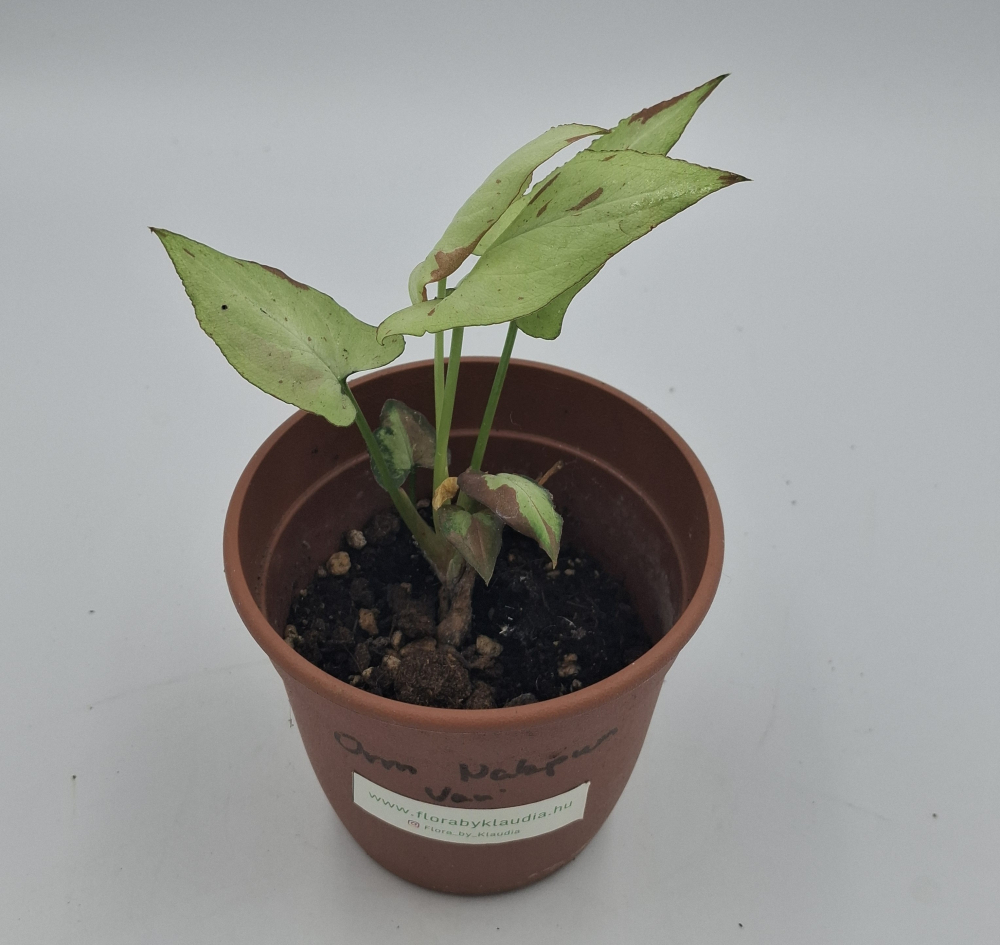 Ez egy különleges, viszonylag ritkább variegált változata a syngonium családnak , „Orm Nagpum Variegata” néven.