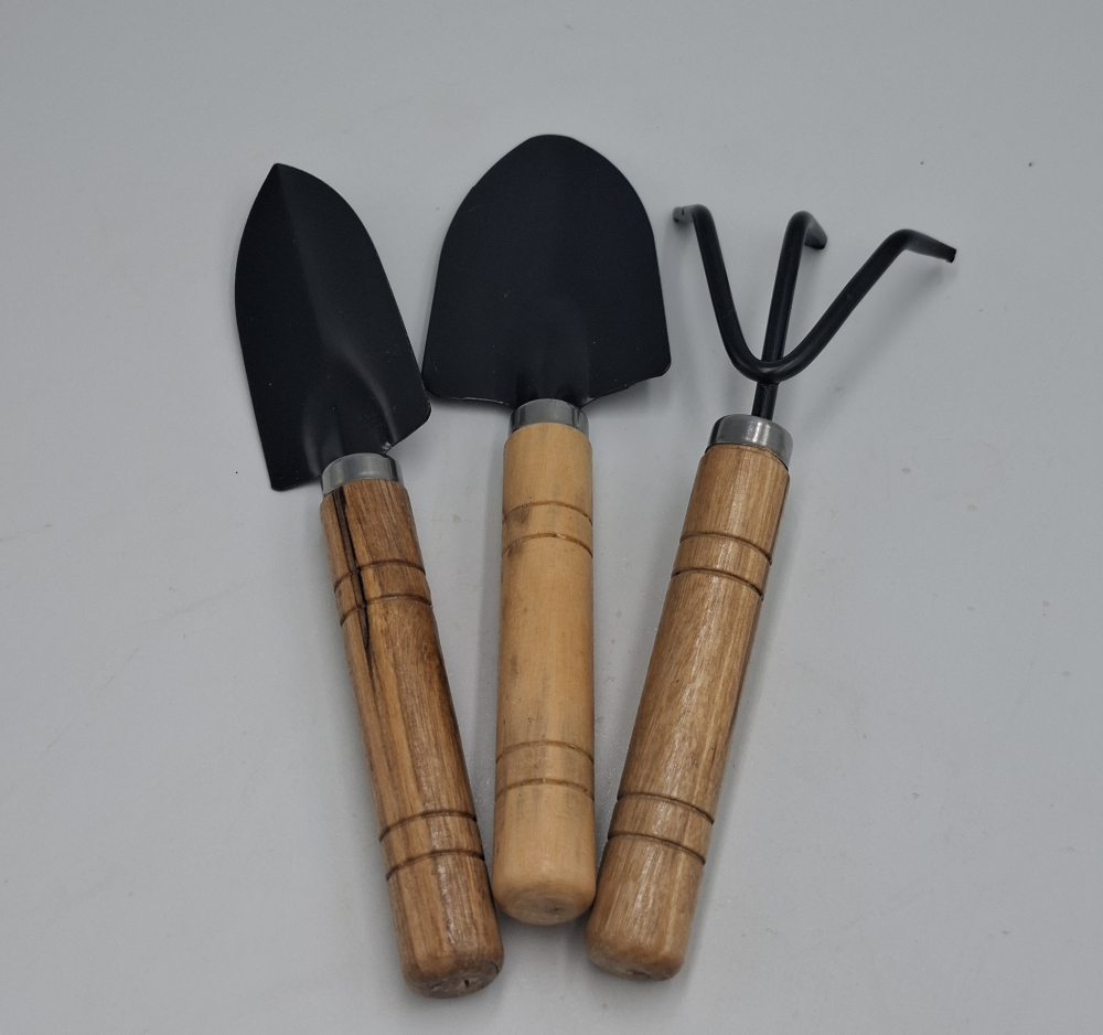 3 darabból álló szerszámkészlet, kis méretű, ideális szobanövényekhez.